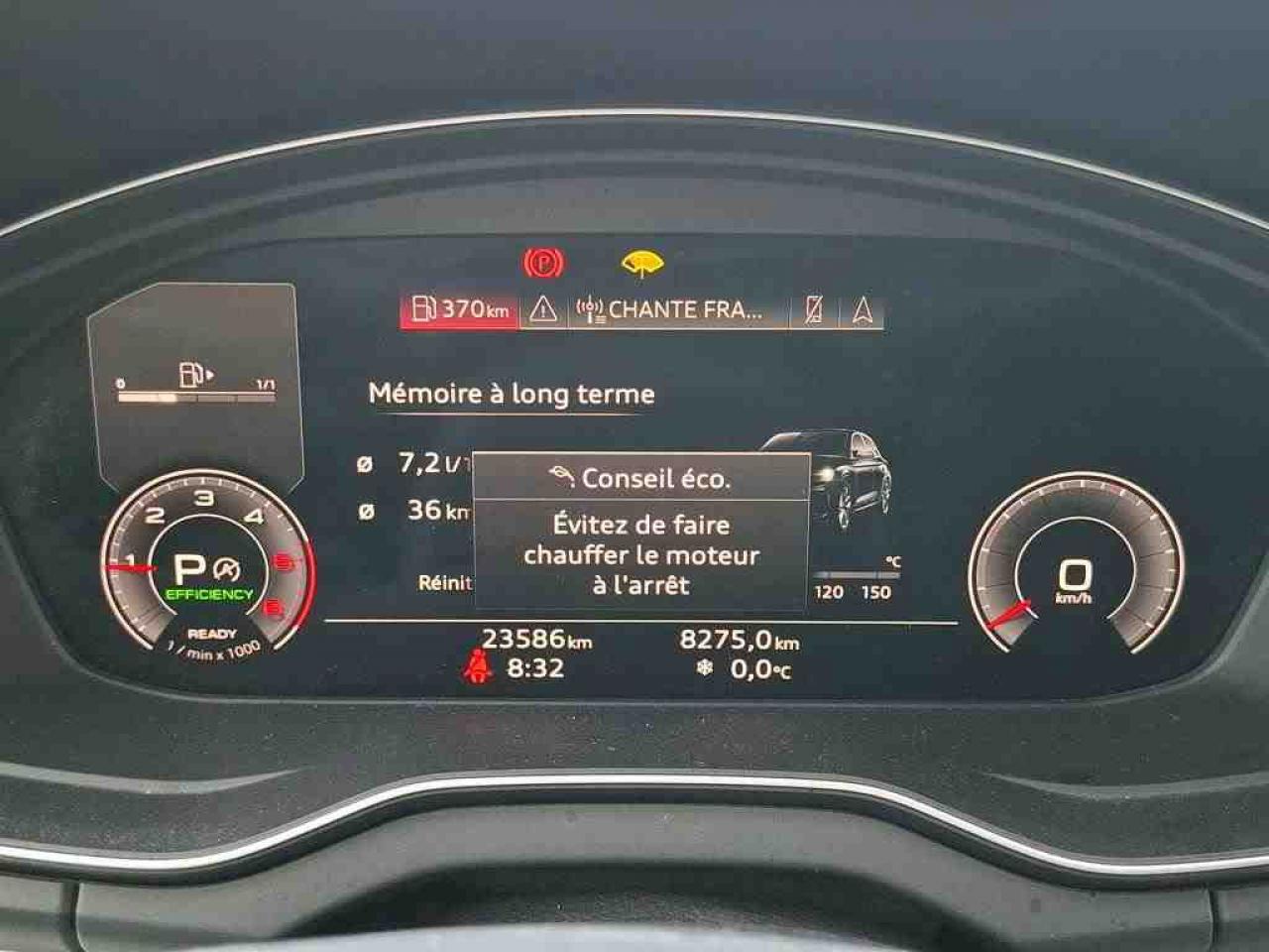 Accoudoir central confort à l'avant avec inclinaison réglable et coulissant en longueurAffichage du contrôle de la pression des pneumatiquesAppel d’urgence et service Audi connect incluant commande du véhiculeAudi connect avec carte SIM intégrée (e-SIM) et licence d'utilisation pour 3 ansAudi Drive SelectAudi Hold AssistAudi parking system plus : signal acoustique et visuel d'aide au stationnement avant et arrière par pictogrammes sur l'écranAudi phone box lightAudi pre sense cityAudi smartphone interface (Apple CarPlay ou Google Android Auto)Audi Sound SystemAudi virtual cockpit plus : combiné d'instruments entièrement numérique de 12,3" en résolution Full HDAvertissement de sortie de voieBanquette arrière plusCaméra de reculClimatisation automatique confort 3 zonesDétecteur de pluie et allumage automatique des projecteursDirection assistée électromécaniqueLave-phares haute pressionMMI navigation plus avec MMI touchPack Eclairage d'ambiancePédalier et repose-pied en acier inoxydableProjecteurs Matrix LED et feux arrière à LED avec clignotants dynamiquesRéception radio numérique : réception des signaux DAB, DAB+ et DMB audioRégulateur et limiteur de vitesseSièges Sport à l'avantVitres surteintées (vitrage Privacy) lunette arrière et vitres latérales arrière surteintéesVolant Sport contour en cuir style 3 branches aplati en bas avec multifonction plus et palettes de changement de vitesses
