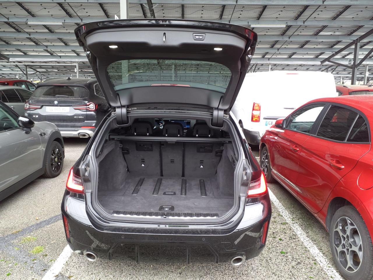ABS, y compris assistant de freinageAccoudoir central avant coulissantApps Véhicule (météo, actualités, recherche en ligne d’adresses, infos parking, prix carburants, etc.) (3 ans)Capacite du réservoir augmentéeClimatisation automatique 3 zonesCommande électrique du volet de coffreContrôle de freinage en courbe CBCDémarrage sans clé via le bouton Start/StopDétecteur de pluie et allumage automatique des projecteursDirection DirectDrive à démultiplication variableEclairage d'accompagnement "Follow me Home"Feux arrière à LEDFeux de jour à LEDFeux de route et feux de croisement à technologie bi-LEDFrein de parking électromécanique avec fonction "Automatic Hold"Lève-vitres avant et arrière électriques avec commande par impulsion et sécurité enfantsPack Aérodynamique MPack Connected ProPrises USB : type A (1,5 A) dans la console centrale / type C (3,0 A) dans l'accoudoir centralRadars de stationnement avant et arrière PDCRails de toit noir brillant BMW IndividualRégulateur de vitesse avec fonction freinage et limiteur de vitesseRétroviseurs extérieurs dégivrantsSélecteur de mode de conduite - 3 modes : "ECO PRO", "Confort" et "Sport"Sellerie Alcantara / Sensatec Schwarz avec surpiqûres contrastantes bleuesShadow Line M brillantSièges avant sportSuspension DirectDriveSystème audio à 6 haut-parleursSystème de récupération de l'énergie au freinageVolant M gainé cuir