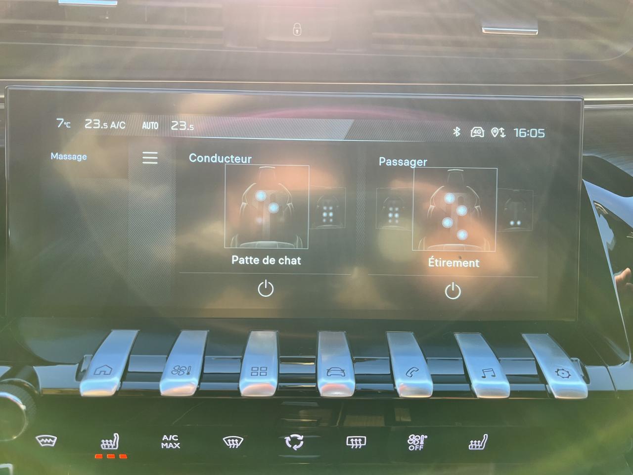 Accès et démarrage mains-libresAccoudoir central avant à ouverture papillon, avec compartiment de rangement éclairéAir conditionné automatique bi-zone avec aérateurs aux places arrièreAVAS : système d'alerte sonore du véhicule émis à faible allure en roulage électrique, audible depuis l'extérieur pour la sécurité des piétonsBarres de toit longitudinales noires brillantesCapot avant actifChargeur embarqué 7,4kWDétection de sous-gonflage indirecteEclairage intérieur LED : Plafonniers avant et arrière avec 2 spots de lecture,Pare soleil avec miroirs de courtoisie éclairés, rangements, caves à piedsEtriers ‘Kryptonite’ signés ‘PEUGEOT SPORT ENGINEERED’Feux arrière full LEDFonction 'Mirror Screen' (Apple Carplay / Android Auto)Frein de stationnement électrique avec aide au démarrage en pente et serrage automatiqueJantes alliage forgées 20" Exxar bi-ton diamantées vernis Black MistPack Drive Assist PlusPack Hayon MotoriséPack InviolabilitéPack Night VisionPack Peugeot i-Connect AdvancedPack Safety PlusPack VisibilitéPEUGEOT Connect SOS & Assistance et TeleservicesPeugeot i-Cockpit avec dalle numérique tête haute 12,3''Prises 12V x1 dans le rangement fermé de console centrale / x1 dans le coffrePrises USB au 1er Rang Dans le rangement sous l’accoudoir central avant : x1 charge/data / x1 chargePrises USB au 2ème rang à l'arrière de la console centrale x2Projecteurs Matrix LEDRétroviseurs extérieurs électriques et dégivrants, rabattables électriquement,éclairage d'accueil à LED,témoin de surveillance d'angles mortsRétroviseurs extérieurs électrochromes avec indexation de marche arrièreRadio Numérique DABSélecteur de modes de conduite modes Electric/Sport/HYBRID/RWDSellerie cuir Nappa Maille technique Alcantara avec surpiqûre Kryptonite TramontaneSièges avant certifiés AGR électriques, chauffants et massants Réglages électriques (8 voies) et 2 mémorisations de réglages pour le conducteur, système de massage multipointsSignature 3 griffes Kryptonite sur le capot, les ailes avant et le volet arrièreSuspension pilotée adaptative 3 modes : Normal/Confort/SportSystème Hi-Fi Premium Focal - 10 haut-parleursToggle Switches' chromés (touches 'piano' d'activation des fonctions de l'écran tactile)Visiopark 2 : caméras avant et de recul avec restitution sur l'écran tactile d'une vue avant ou arrière, et d'une vue de dessus de l'environnement du véhicule sur 360°Volant cuir fleur perforé avec surpiqures Kryptonite/Tramontane et insert noir brillant signé des 3 griffes Kryptonite